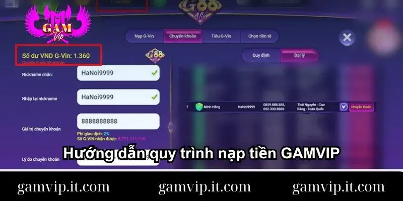 Hướng dẫn quy trình nạp tiền GAMVIP
