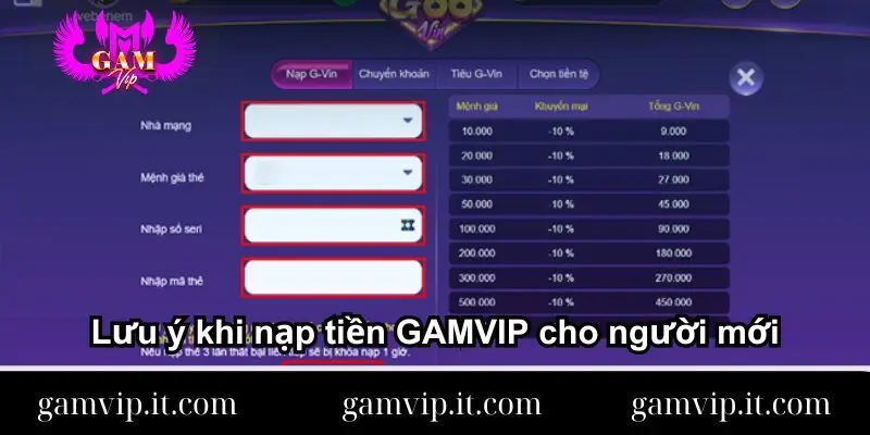 Lưu ý khi nạp tiền GAMVIP dành cho người mới bắt đầu
